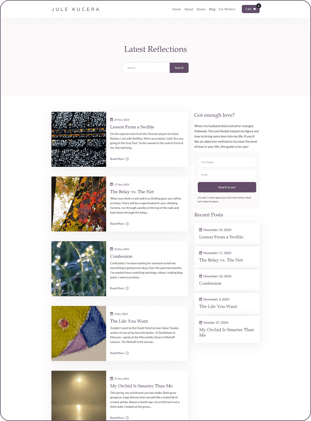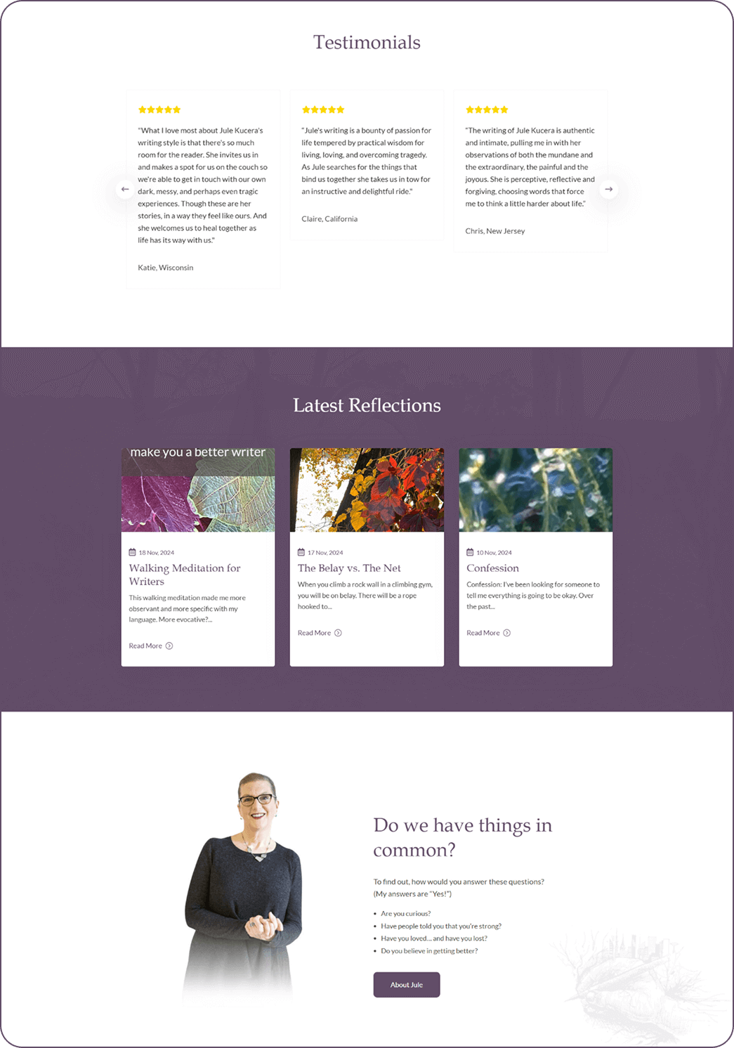 The Latest Reflections section and testimonials were updated for better contrast and readability. These changes improved the homepage usability and engagement.