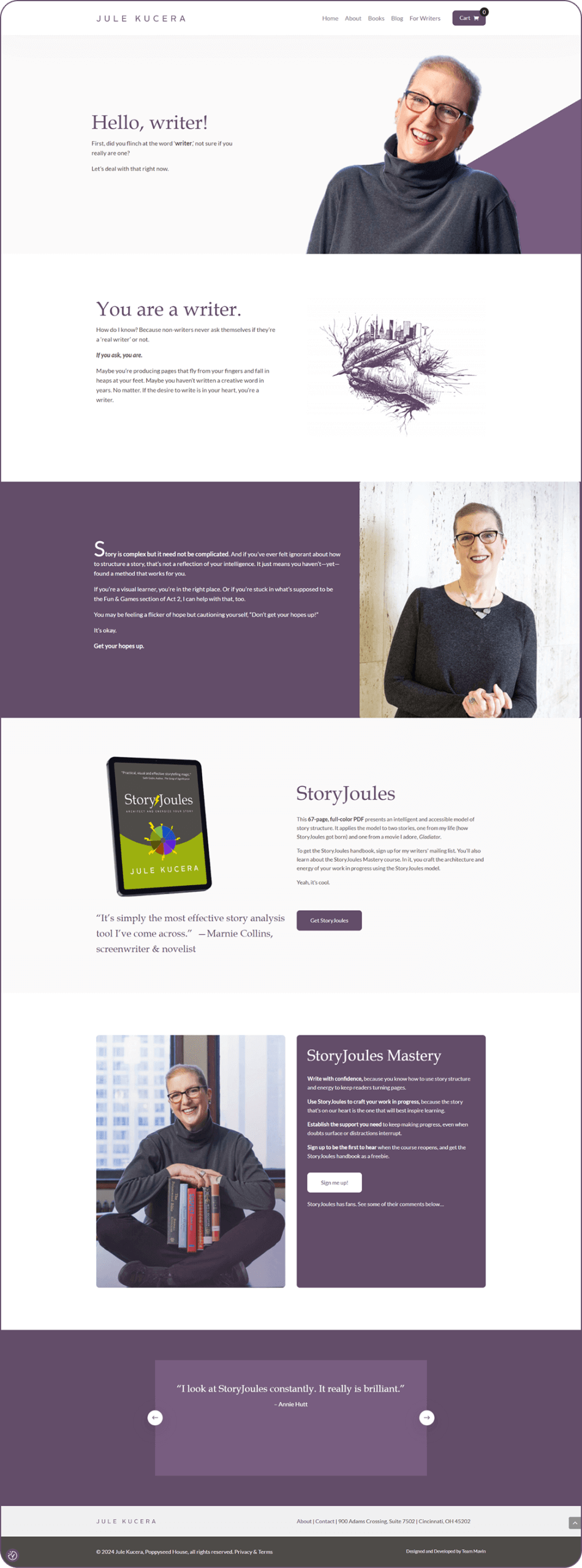 We designed the Writers page with a clear structure, organizing content into easily navigable sections. added icons and images for visual interest, ensuring the page is engaging. Strategic CTAs were placed to guide users toward exploring resources or connecting with Jule, making the page user-friendly and action-oriented.